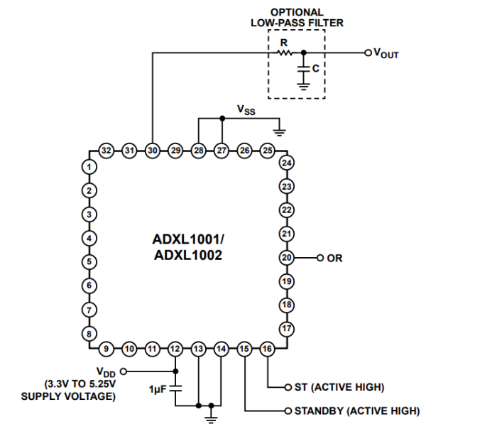 ADXL1001/ADXL1002 擁有集成的全靜電自檢 (ST) 功能和超范圍 (OR) 指示器,可以提供先進的系統級功能并可用于嵌入式應用。憑借低功耗和 3.3 V 至 5.25 V 的單電源供電,ADXL1001/ADXL1002 還允許進行無線感測產品設計。ADXL1001/ ADXL1002 提供 5 mm × 5 mm × 1.80 mm LFCSP 封裝,可在 ?40°C 至 +125°C 的溫度范圍內工作。