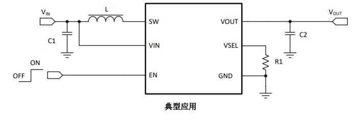 輸出電壓范圍:VSEL 引腳選擇輸出電壓為 1.8V 至 5.5V