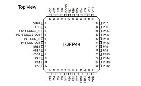 STM32F051C8T7的引腳封裝圖