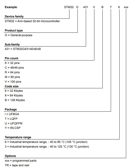 意法半導體STM32G431KBU3的型號解釋圖
